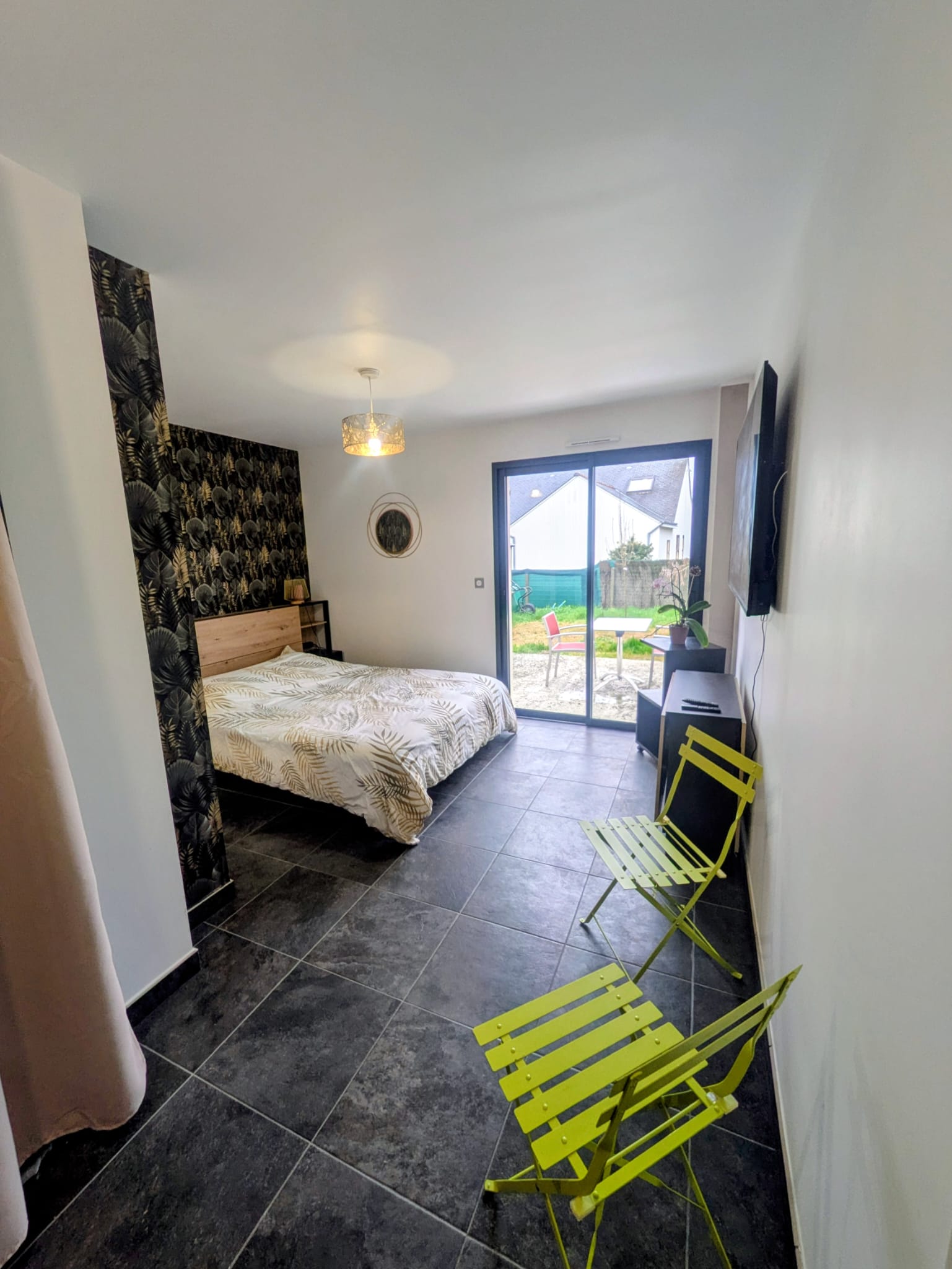 Chambre tout équipée avec coin cuisine, literie confortable et salle d'eau privative.